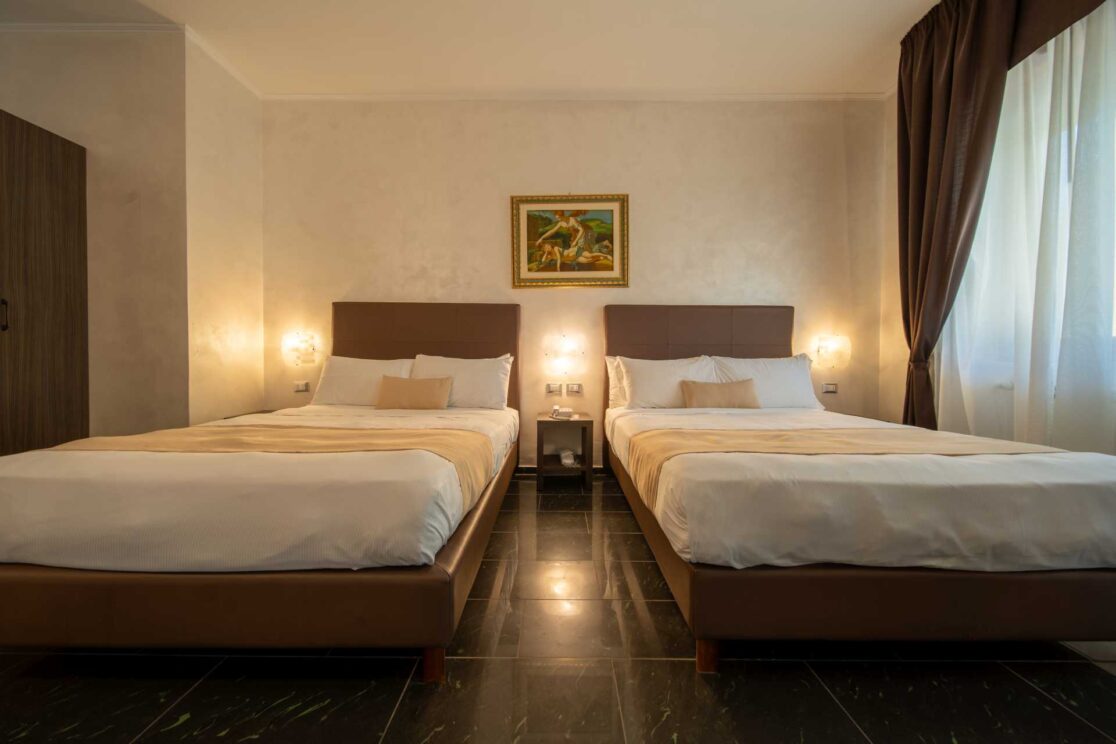 Arredate in modo romantico e moderno; dotate di Televisori a schermo piatto, aria condizionata e tutti i comfort che un albergo 4 stelle possa offrire, sono fornite di due letti alla francese, elegantemente arredate con stoffe damascate e tappeti persiani, pavimenti in marmo, mobili in legno wengè, complementi d’arredo unici e quadri in stile vittoriano.